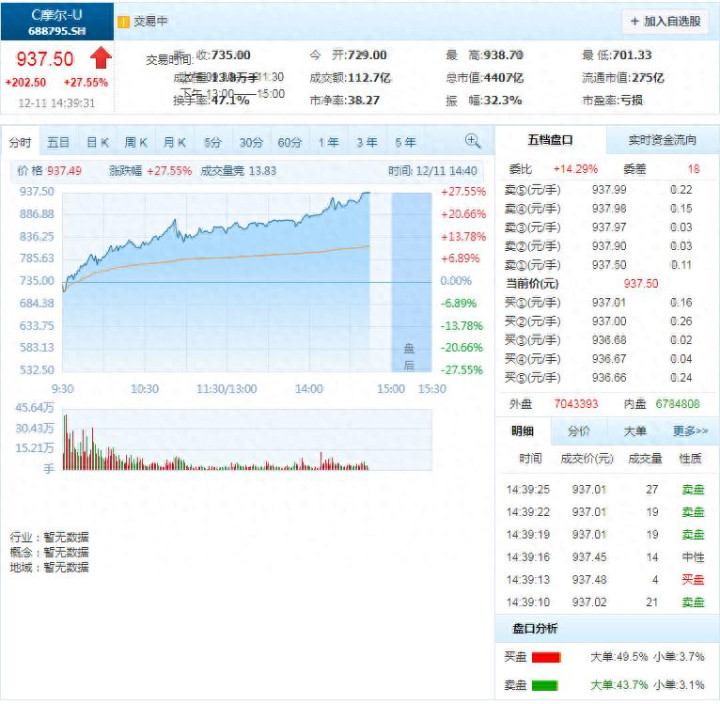 摩尔线程上市第五日,股价突破900元,股价现居A股第三,仅次于贵州茅台与寒武纪,总市值突破4200亿元。